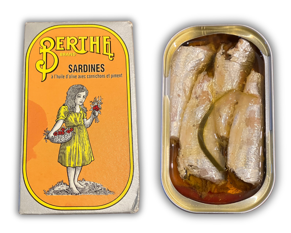 For this recipe, we use Berthe Sardines in Spiced Olive Oil with Pickles, which shipped in the March 2026 Tinned Fish Club box. The oil in the tin makes for a flavorful drizzle. We add our own pickles too, of course.